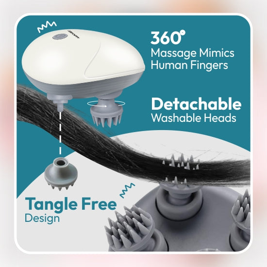 Feel the difference with 360° rotating massage nodes that replicate the touch of a professional massage. The Mildcares Scalp Massager gently kneads and stimulates your scalp, boosting blood flow and easing tension — for a deeply relaxing and refreshing experience.
