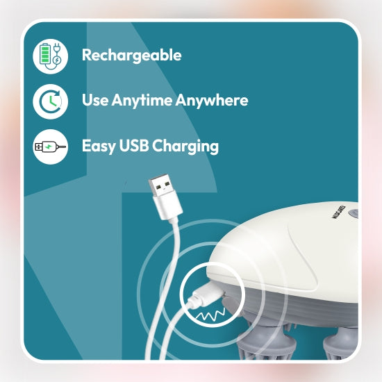 Rechargeable & Portable Head Massager with 4 Rotating Nodes for Hair Growth, Relaxation & Stress Relief
